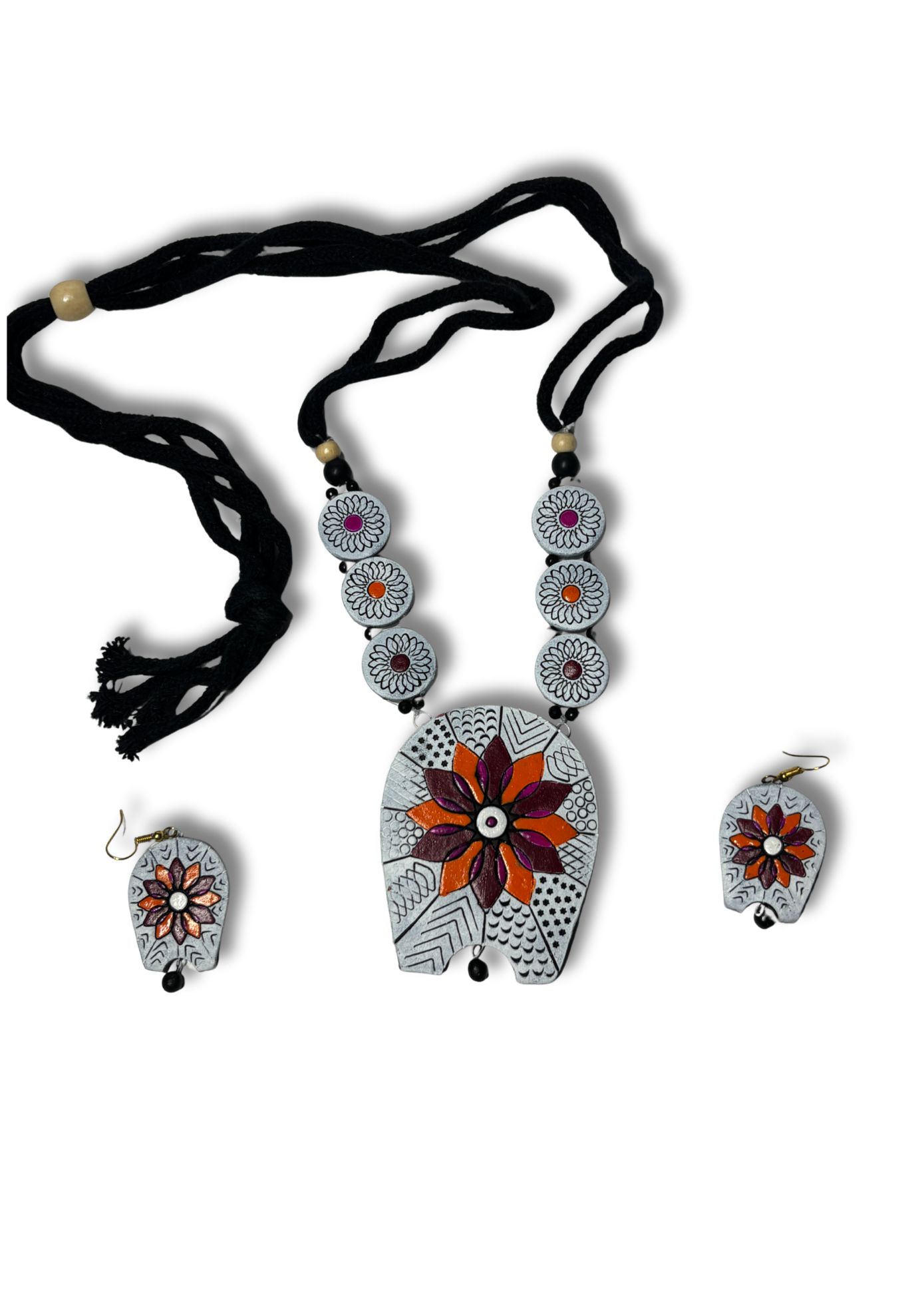 Handcrafted Terracotta Floral Jewelry Set – Necklace and Earrings