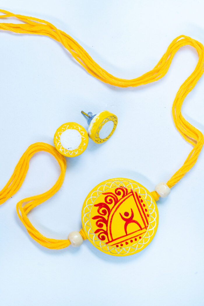 Add a touch of tradition with this beautifully handcrafted terracotta necklace set from Abhrasri Creation. Featuring vibrant red and yellow hues with intricate hand-painted designs, this eco-friendly clay jewellery is perfect for festive and ethnic wear.
