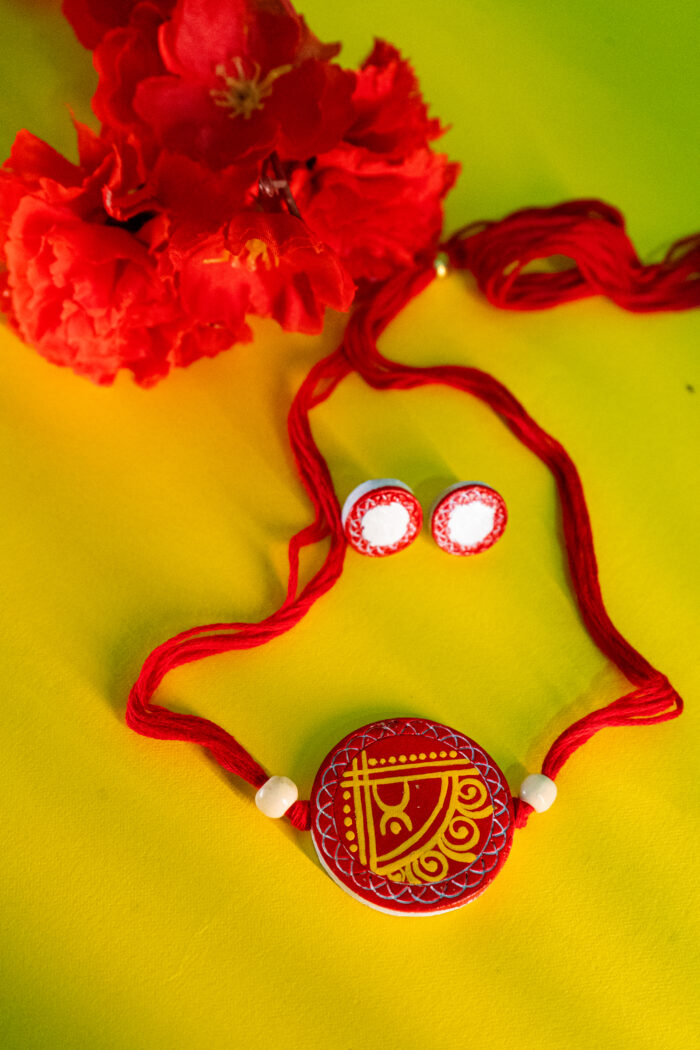 Add a touch of tradition with this beautifully handcrafted terracotta necklace set from Abhrasri Creation. Featuring vibrant red and yellow hues with intricate hand-painted designs, this eco-friendly clay jewellery is perfect for festive and ethnic wear.